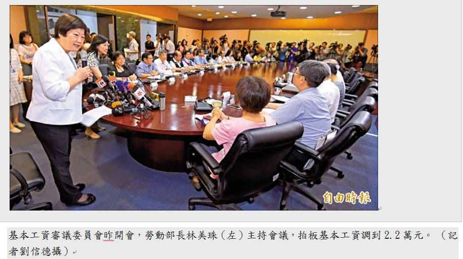 數兩萬二,主持會議的勞動部長林美珠徵詢在場委員意見,大多數接受基本工資月薪調為二萬
